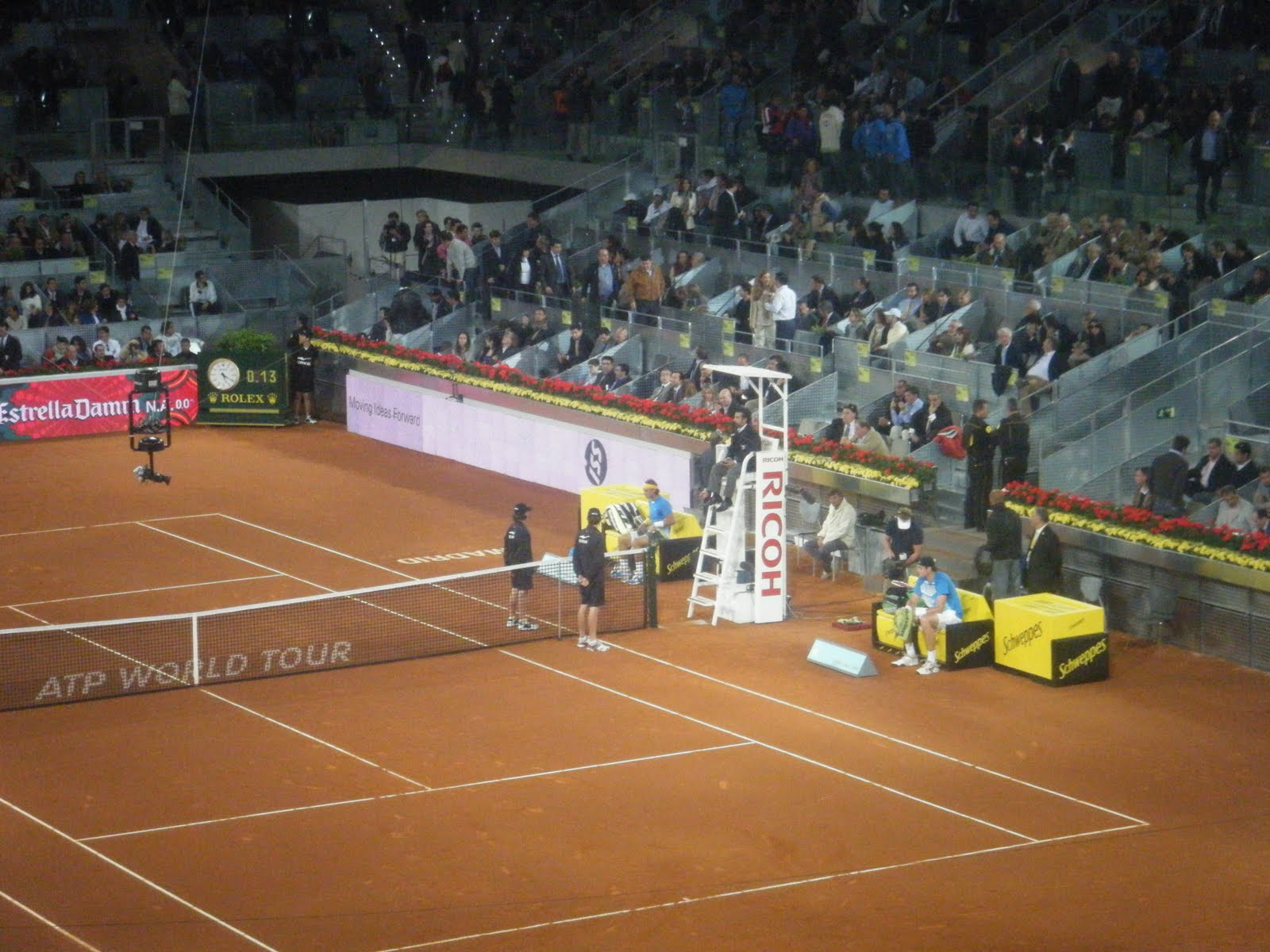 Empiezan los partidos. Entramos en la pista "Manolo Santana", hombre que por cierto tuvimos la suerte de ver. Empezamos con algunos jugadores cuyos nombres no habia oído en la vida, pero que mi primo conoce bien.
